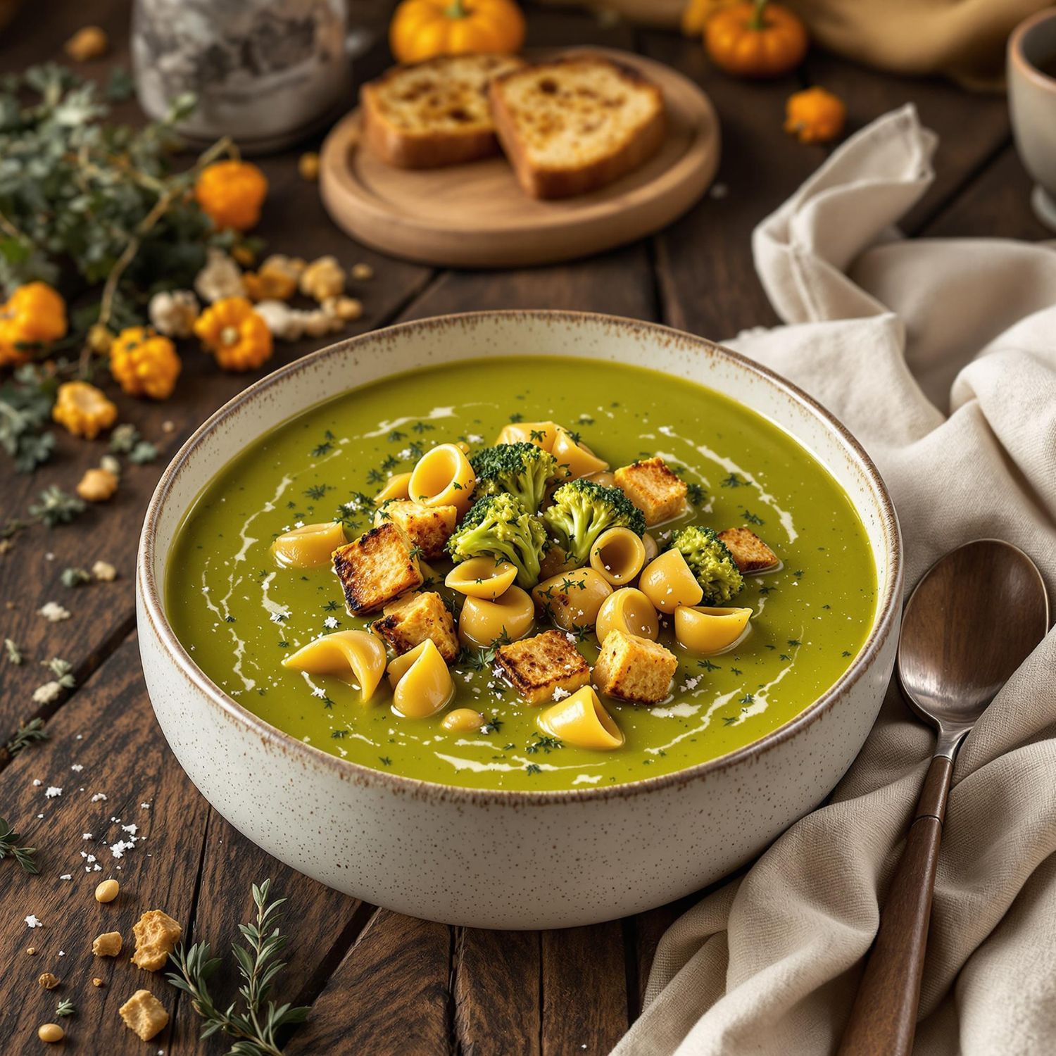 Dieses Rezept ist ein echtes Kraftpaket! Brokkoli steckt voller wertvoller Nährstoffe und verwandelt sich hier in eine leuchtend grüne, aromatische Cremesuppe. Die kleinen Muschelnudeln als Einlage machen sie zu einer vollwertigen und überraschenden Mahlzeit.