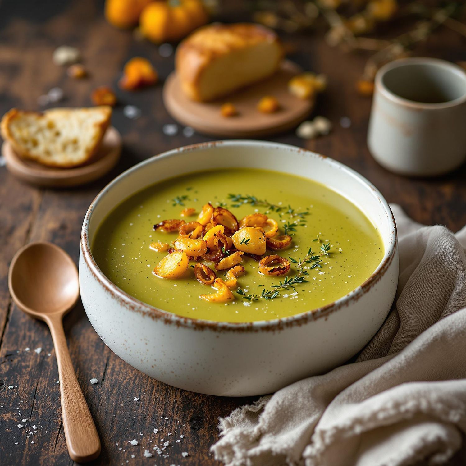 Diese Suppe ist ein wahrer Seelenschmeichler. Sie ist mild, unglaublich cremig und durch die Kartoffeln wunderbar sättigend. Das Topping aus Röstzwiebeln verleiht ihr den letzten, knusprigen Schliff.